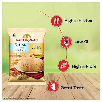 LOW GI ATTA: Aashirvaad Sugar Release Control Atta is a Low GI atta which releases sugar slowly in the body thus helping prevent sugar level spikes