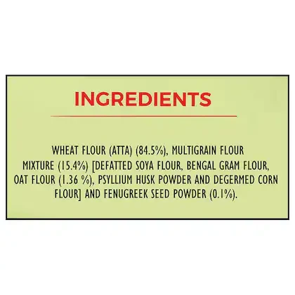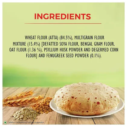 MIX OF WHEAT LEGUMES & PULSES: It contains whole wheat, methi, oats, soya, channa and psyllium husk which provides you and your family with wholesome nutrition
