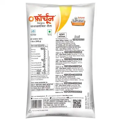 Fortune Sunlite Refined Sunflower Oil is one of the most commonly used ingredients in an Indian household. This Oil is ideal for your cooking needs. Use sunflower oil for roast potatoes, Yorkshire puddings, stir-frying vegetables or even in bakes as a replacement for butter. Buy Fortune Sunlite Refined Sunflower Oil online now!