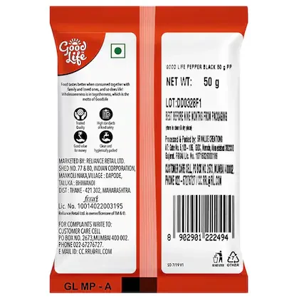Pepper has a distinct, strong, and aromatic taste of its own. Black Pepper along with stemless chilli, mustard seeds, and onions, is used in sauteing and tempering dals and vegetable dishes. Use Good Life Black Pepper to bring a flavourful twist to your meals. Buy this product online today.