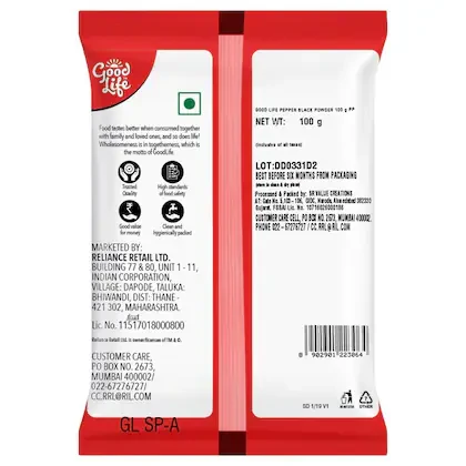 We all know that pepper is the wonder spice that accentuates the taste of every cuisine. Just sprinkle some black pepper powder on omelettes, sandwiches, pasta, soups and stews to add a peppery zing. Buy Good Life Black Pepper Powder online today.