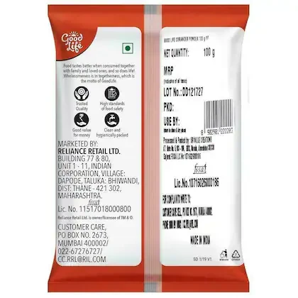 Coriander or Dhaniya powder is an essential part of every kitchen. Made by crushing dried coriander seeds, this spice lends a citrusy flavour and aroma to various dishes. Enhance the taste of your cuisine by adding Good Life Coriander Powder. Buy this product online today.