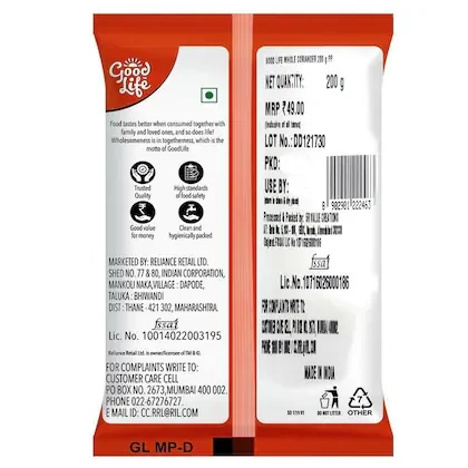 Coriander/Dhania seeds are obtained from a plant known as Coriandum Sativum. These seeds are rich in flavour and aroma and are widely used in culinary preparations all around the world. Good Life Whole Coriander is freshly picked from nature and can be used to enhance the taste and aroma of various dishes. Go ahead and buy this product online today.